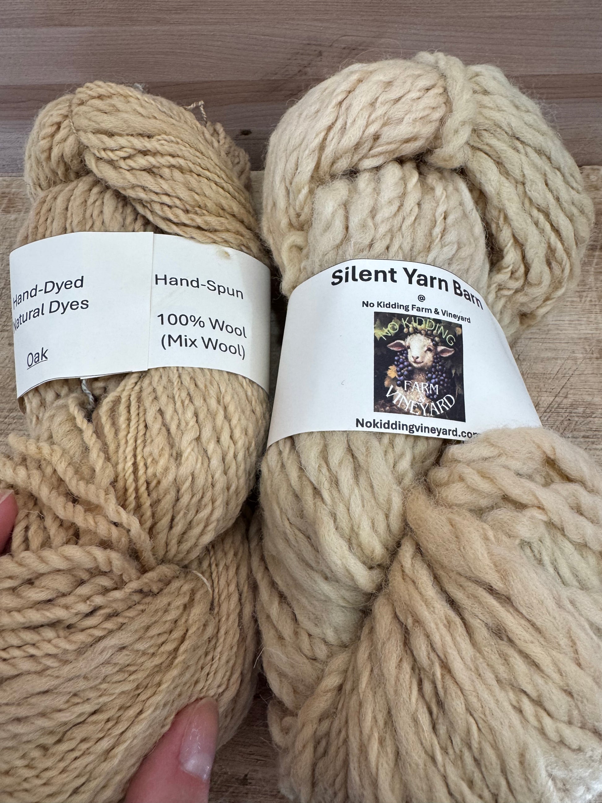 Hand-Spun, Naturally Hand-Dyed with Oak Leaves, 100% Sheep Wool Yarn, 2-ply